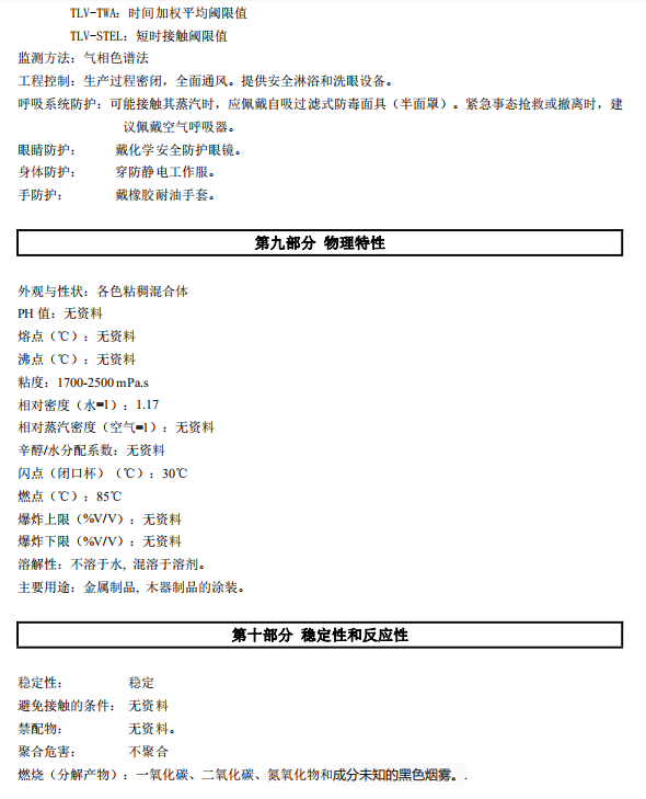 水平。在混合后要小心处理。使用手套。急救:如果不慎接触了眼睛,立即用清水冲洗至少 15 分钟,并脱去污染的衣鞋,用肥皂清洗接