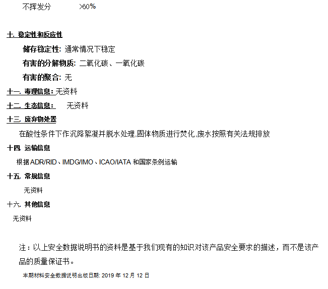 储存和产品有效期 | 1年。产品储存必须遵守国家规定。应保存于阴凉、通风良好的地方,避免过高的温度。容器必须牢固密封。 |